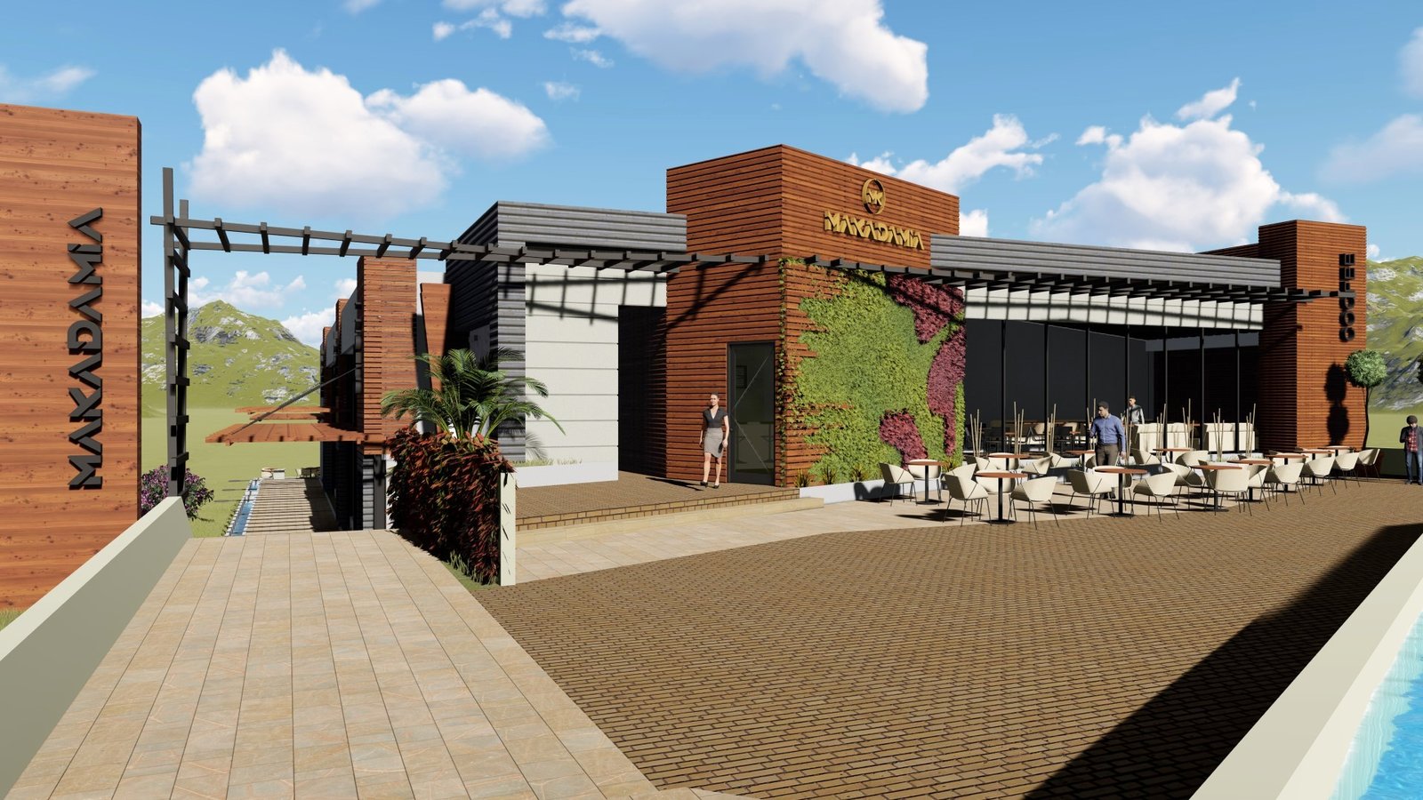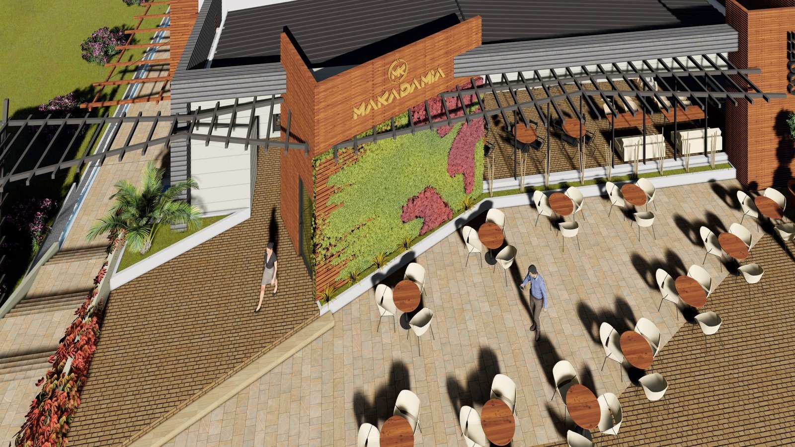 MAKADAMIA fue diseñada de tal forma que nos permite tener multiespacios adaptables según la capacidad requerida, espacios cerrados y a campo abierto o semi-abierto, para el desarrollo de diferentes actividades como: